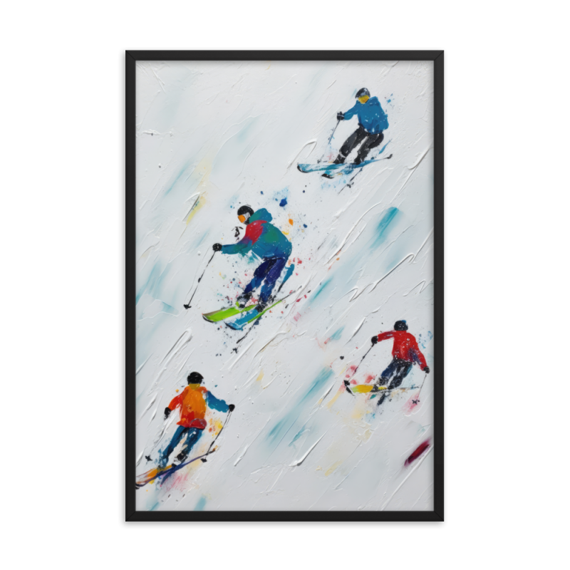 This captivating artwork captures the excitement of winter sports, featuring dynamic scenes of skiing and snowboarding. The vibrant colors and skillful brushstrokes bring the adrenaline-fueled action to life.