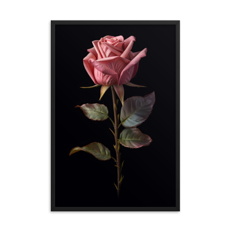 This captivating artwork features a stunning magenta rose delicately captured against a striking black background. The vibrant color of the rose stands out with an ethereal glow, creating a mesmerizing contrast.
