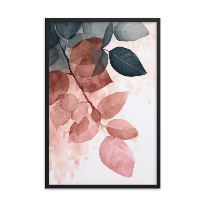 This captivating artwork features a watercolor painting of leaves in shades of navy and blush, evoking a sense of nautical tranquility and natural beauty. The delicate interplay of colors and intricate details create a soothing yet visually striking composition.